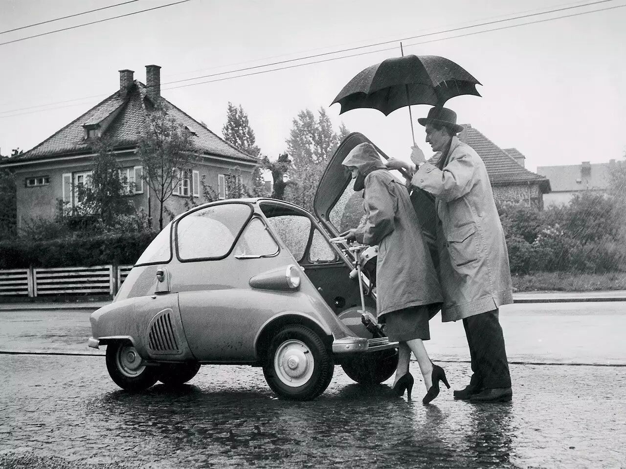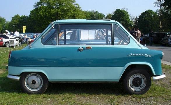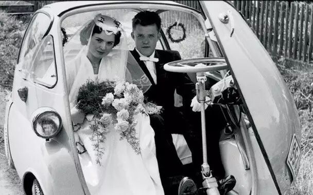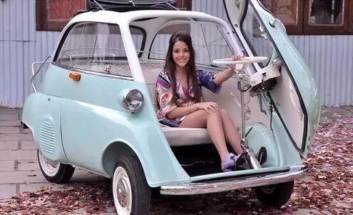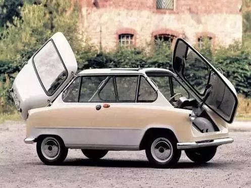 这是BMW的依赛塔( Isetta),在车头正前方的地方,安装了全车唯一的一扇车门。